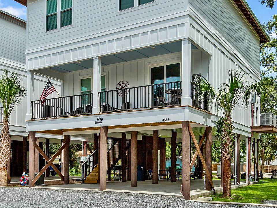 The Cottages at Old Bay are located on Terry Cove in Orange Beach, AL east of the Walker Key development, offering the finest in back bay living. Come enjoy sitting by the pool with beautiful views of the bay or go for a ride in your boat docked at your deeded private 12' boat slip. These detached single-family residences are available in 3 bedroom/4 bathroom plans and feature hardy plank exterior siding and metal roofs. Home is raised on pilings and engineered to high wind loads for storm protection with gold standard. Interior finishes will include stainless appliances, granite counter tops, custom wood cabinetry, hard surface flooring, and pine shiplap paneling on main level walls. The community will provide a gunite pool with a landscaped & lighted concrete patio. Stainless Appliances including Refrigerator with Ice Maker, Dishwasher, Garbage Disposal, Microwave, Range/Oven, Custom Tiled Shower in Master & Tiled Surround/Cast Bath in guest bathrooms. Hardy plank exterior with Metal Roof, Storm windows with impact glass. Fortified Gold Standard Construction Cooling and Heating: energy efficient heat pump, 3 Parking spaces under each Residence with plenty of extra space. Storage underneath. Resort Style Community Pool, Decorative Gravel Entrance, Environmentally Friendly Landscaping, & Lighting. Pet Friendly, Excellent Rental Potential & Projections. HOA Fee $340/mo. HOA covers pool & landscaping, maintenance, cable TV, internet, trash, and liability insurance. This Cottage already had over $13,000 in reservations with Vacasa Rental Program since going into the rental program approximately 4 weeks ago.