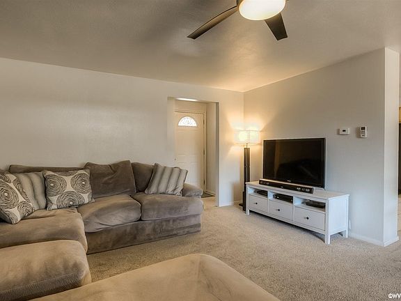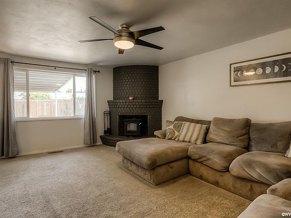 Accepted Offer with Contingencies. SINGLE LEVEL RANCHER, CLEAN, NICE FLOOR-PLAN! Great 3 Bedroom home in a solid neighborhood. Large & open kitchen with updated cabinetry, counters and backsplash. Living room features a beautiufl brick fireplace w/ sleek & efficient wood-burning stove. Fresh interior paint, vinyl windows, new furnace & newer carpet. Good storage throughout. Utility room inside, 2 car garage, large covered back patio & a fully fenced yard. This home has an attractive price yet has A LOT to offer.