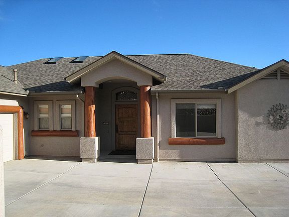 Panoramic views from almost every room in the house and a great floorplan. Delightfully decorated w/ many special features and custom appointments on extremely private lot. Two master suites on opposite ends of the home both open to patio with fabulous views of the Bradshaw Mts. Third room is a den for quiet reflection or could be an office. 10 ft. ceilings throughout except for the vaulted ceilings in the Kitchen/Dining/Great Room. Great Room/Dining room features Wood flooring and gas fireplace, lots of niches for artwork and more views! Kitchen is granite countertops and knotty alder cabinets Full Baths: 2, 3/4 Baths: 0, 1/2 Baths: 1 House freshly painted with Sherwin Williams Duration paint in April 2011. New Carrier Infinity 16 AC Unit with Infinity 95% Gas Variable Speed Furnace Aug. 2013. Replaced all windows with Renewal by Andersen Vinyl Clad Casement Windows Oct. 2013. Garage cabinets were installed and interior walk-in closets also got new custom cabinets installed in 2013. New seamless rain gutters were in also in 2013. Kitchen was remodeled with Granite and Travertine Backsplash in 2012. Bedroom carpeting was replaced in 2012. Custom garage cabinets, bedroom closet cabinets, and epoxy flooring were also done in 2012. A 170 sq. ft. 4Seasons Sun Room was added in 2014, which is fully conditioned. Also in 2014 Pavers were added to the entire side and rear area of the home, making for a fabulous backyard experience. A custom grill/bar area with natural gas was added as part of this project. In January of 2015 the dining room and great room carpeting was replaced with real wood flooring. Part of this remodeling was upgrading the fireplace with Split Face Travertine Stone. In 2020 vinyl flooring was installed in guest master/recreation room. In October 2020 a 2.8 kw solar system was installed.