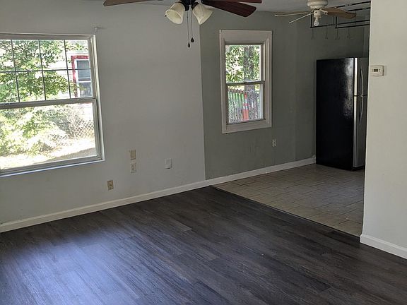 Must see this cute 2 bedroom and one bath. Has a large back yard all fenced in. The inside has new laminated flooring in bedrooms and living room.  The bathroom has been completely remodeled with new shower and tub, flooring, all new plumping, even partly under the house was replaced, new vanity and stool. You really must see this cute home.  Appliances stay if you want them too. House has had some siding replaced and house has been painted. New windows in part of the house and new screens.   Please grab your agent and come see this cute home.
