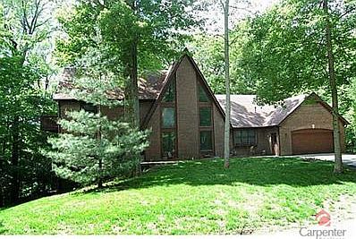 5000 square feet on 5 acres and private dock on 500 acre Lamb Lake. This is a lot of house for the money and a great opportunity to enjoy what many people say is Indiana's best lake. Huge rooms, soaring ceilings, dramatic 26ft chimney in Great Room, finished walk-out basement. It has a separate 3 car detached garage to store cars, boats and lake gear. The private dock is an easy walk. The acreage is heavily wooded with trails and spring fed stream. Needs a few cosmetics - sold as-is.