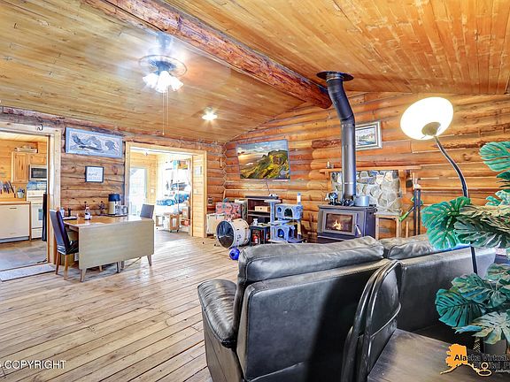 This log house has been priced to sell! Located Between Sheep Creek Lodge and the Talkeetna Spur Road. This property is on a borough-maintained road that parallel's the state-maintained highway,located by multiple Salmon creeks 5 minutes away. Not to mention 10 minutes away from our local grocery store "Cubbies". Inside, you'll discover this two bedroom home is made for comfort. The laundry room and bathroom are shared, it has a new washer and dryer, toilet with bidet, large luxurious jet tub tube ready for relaxation. The kitchen is fully equipped some newer appliances as well. All the waterlines are PEX lines and were installed with the a new water filtration system. The large living room is perfect for entertaining or enjoying cozy evenings by a Blaze King 40 Wood Stove Fireplace! The circular driveway offers easy access and ample parking for you and your guests. The property also includes a couple of outbuildings including a greenhouse, and a shed. Located in a fire-serviced area, This log home combines rustic charm with modern conveniences, making it an ideal escape from the hustle and bustle. Contact today to schedule a viewing! Contact Tabitha Perez with MVFCU to qualify for a cabin loan!!!