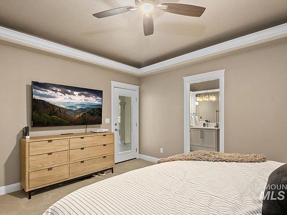 Beautiful split bedroom floor plan with elegant coffered ceilings and upgrades throughout. Smart locks, nest doorbell and upgraded media panel for your technology needs. Wonderful covered patio with roll down shades for privacy. Garage is a must see with epoxy flooring, 44' RV bay, ceiling mounted storage racks and is wired for a 220 EV charger and a separate 220v plug for your RV. Conveniently located next to shopping, grocery and dining. Bridgetower West boasts a community park, swimming pool and natural beauty throughout.