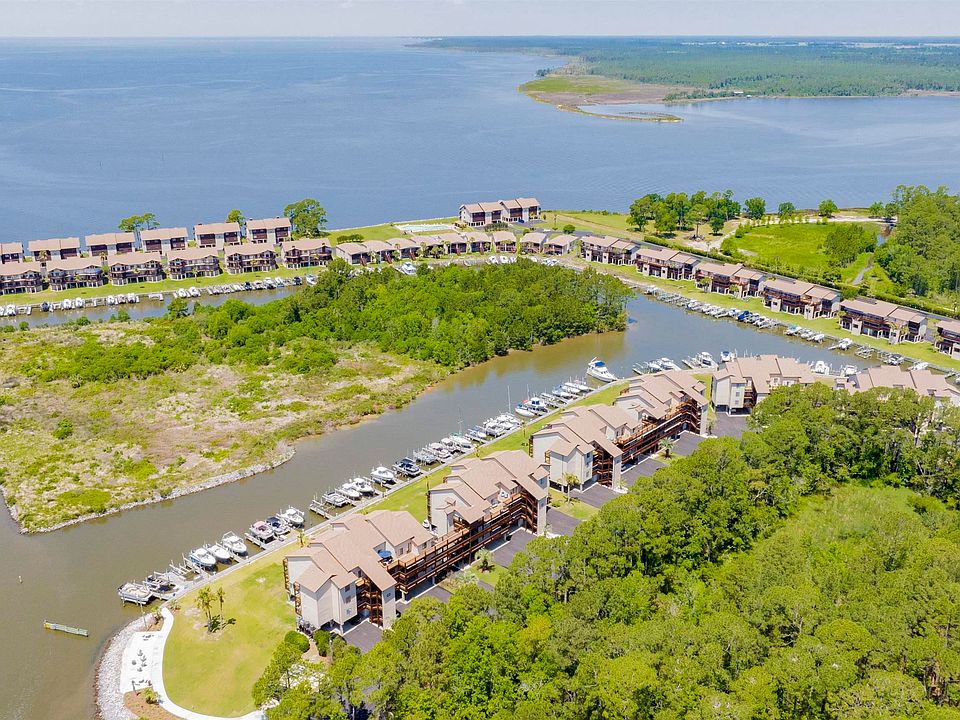 REDUCED AND READY TO SELL! RARE TOP FLOOR WITH LOFT! Live the island life on Plash Island in this quiet and peaceful gated condo community called Sailboat Bay! This TOP FLOOR CORNER unit with breathtaking views from 3 balconies has 4 sets of new Hurricane rated low E patio doors, New Hurricane Low E window in 2nd bedroom, new sceened and covered balcony that is an extension of the main living area. Updated cabinets, appliances, granite, walk in shower, HVAC, plumbing, water heater, and new furnishings all to stay! This 3BR also has a bonus loft and observaion deck overlooking the marina, ICW, Bon Secour River and the Bon Secour Bay with direct access to Mobile Bay and the Gulf or anywhere else that is possible by water. Huge boat slip for any size boat and direct short ride access by water to Billy's and Aquila seafood, Jessies, Tin Top, Tacky Jacks, LuLu's the Warf to name a few. This is a must see one-of-a-kind condo in super excellent conditon that is turn key and ready to move in. Ammenities include two salt water pools (one heated) sauna, updated excercise room, tennis/pickle ball court, boat launch, boat storage. You gotta see this place!