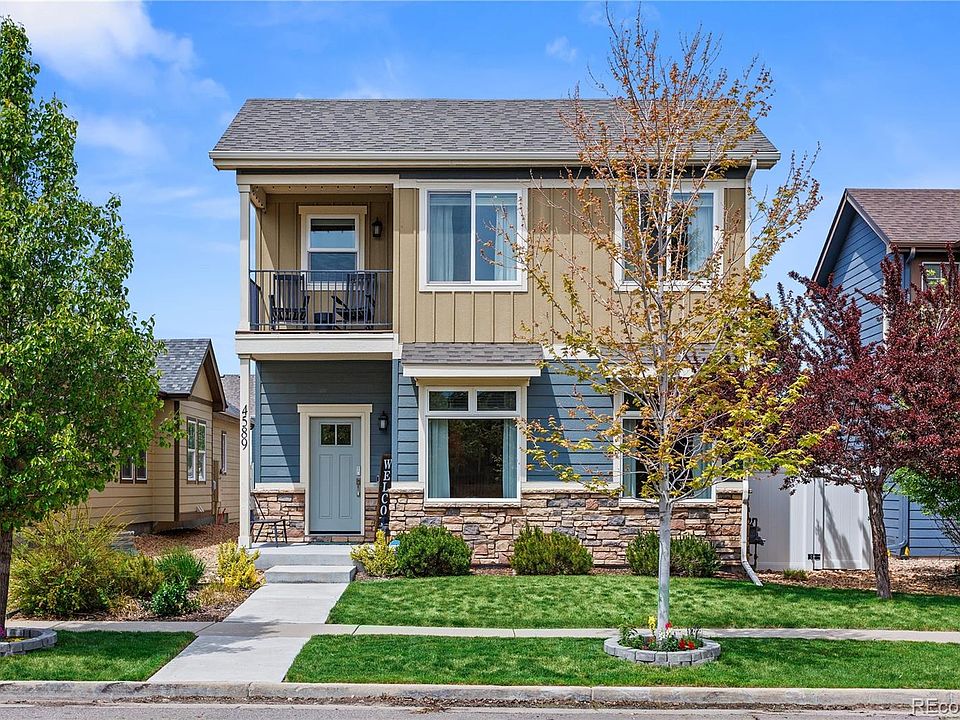 This amazing semi-custom home has it all! Too many upgrades to list, but a few include 3 panel solid wood doors with custom trim throughout, custom paint, upgraded windows, ceiling fans in all the bedrooms, 5" Baseboard trim Walk in to the light and bright living room with custom gas fireplace (Tile Surround & Wood Mantel + Soft Close Cabinetry & quartz counter) with 10' Ceilings, Energy Efficient Furnace/AC. The open floor plan and large high grade vinyl windows give a spacious feel with plenty of light. The kitchen offers a Custom level of soft close high grade dove tailed cabinets, quartz counters, a huge pantry, Slate Stainless Steel appliances and a quartz penisula for your morning coffee. The Main Floor powder room is next to the 4th bedroom/Possible Office with French Doors and closet space. Down the hall to the attached garage access door and mud room. The oversized fully insulated with 12' Ceiling garage is a treat in itself with an EV Charging Station, large windows, and service door to the side yard. Now, on to the upper level with the substantial Primary Suite, HUGE walk in Closet with built in shelving, ceiling fan,built in cabinetry with a counter for morning coffee, a private balcony to enjoy the coffee. The private 4 piece Primary Bath offers a large frameless glass shower, double sinks & private toilet. Down the hall to the open loft, 2 more bedrooms and a Full bath with double sinks. Don't forget the private fully fenced backyard with covered patio, pet area, grassy area and paver patio perfect for a fire pit. Brighton Crossings offers amazing amenities: pool, fitness center, dog park, tennis/pickleball courts. Walk to highly rated Foundations Academy K-8 in the community.