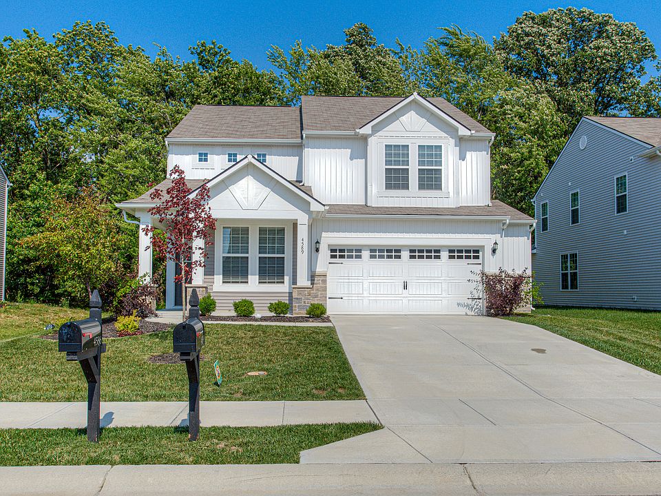 Welcoming charmer by the woods! Built on a premium lot next to a lush nature preserve, this open concept, 4 bed/2.5 bath home has abundant natural light. Delight in this kitchen with a large quartz island, marble backsplash and stainless steel appliances. Main floor has a spacious living room, powder room, flex room with french doors, cozy work space and mudroom area. Upstairs you'll find spacious bedrooms, a bonus loft, and a large owner's suite with double vanities and 3 closets. Improvements include Ring doorbell/alarm system, hardware on all cabinets throughout, beautiful light fixtures, fridge, washer/dryer, water softener and finished 2-car garage. Enjoy your privacy and stay in the heart of thriving Whitestown!