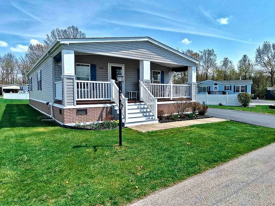 Rench Style Manufacture home in land lease 55 + Community in Clarence . This perfectly located home comes with 2 large bedrooms , kitchen with all appliances and breakfast bar , dining room , living room and den . Master bedroom features master bath with walk in shower and double closet. Front porch , large shed and extended driveway . New roof , Hot water tank , Extra wide Driveway , Front porch with vinyl railings and composite boards. Laundry room comes with washer , dryer and Utility tub.