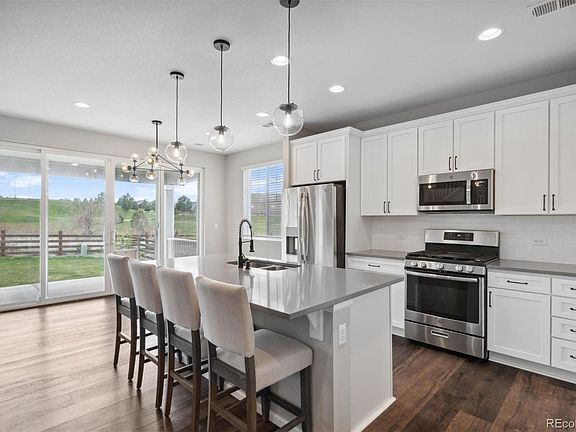Welcome to this rare, meticulously maintained, and generously upgraded home that backs to open space. Benefit from the desirable Cherry Creek district and Copperleaf community features, including pool, clubhouse, and many parks. The owner optioned upgrades throughout to enhance liveability and style. The bright and open living room is illuminated by SW light during the day and by the gas fireplace in the evening. Large glass sliding doors bring in the unencumbered, expansive views of the open space and step out onto the upgraded to full-width covered patio providing generous outdoor lounge space and improved with gas hookup for summer cookouts. The kitchen is a chef's delight, featuring upgraded stainless steel appliances including upgraded gas range, upgraded designer lighting hung above both the eat-in kitchen island and dining room, and ample storage. The upper floor accommodates all three bedrooms on the same level and opens to the loft area with the potential for a great office/flex space. The primary suite is enhanced by general light from surrounding windows, a walk-in closet, and an ensuite 3/4 bath w/ dual shower and spray head, dual vanity sink, and water closet. The laundry room is situated on the upper level for added convenience. The garage has been upgraded for an additional foot in height, accommodating larger vehicles or storage needs. HOA fees are paid semi-annually in January and July. Seller is including all furniture in the home as part of the purchase, inclusive of four kitchen bar stools, two living room storage cabinets, backyard raised garden bed, window coverings, curtains and curtain rods, and the entirety of the SimpliSafe security system.