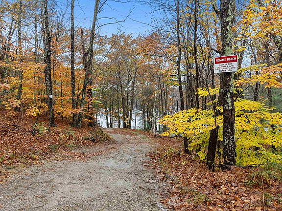 OPEN HOUSE CANCELLED! Updated home with access to Long Pond for fishing, boating, swimming, skating and more! This home has all the big projects done for you! Completely refreshed throughout with new luxury vinyl plank flooring, furnace, tankless water heater, recessed LED lighting, pex plumbing, as well as freshly painted! First floor has a white cabinet kitchen with updated laminate countertops and newer appliances that flows into the living room with wood plank accent wall and wood stove that heats the whole home! Laundry room with stackable washer and dryer as well as folding area leads into the dining area and the large sunroom! Sunroom has a new metal roof and pellet stove for alternative heating. Deck off the sunroom for outdoor living space. The first floor bedroom has a large closet and built in shelves! Up the spiral staircase is a bonus space that can a reading nook, currently used as a closet. Beyond is the other room used as a bedroom with newer carpeting. Plenty to enjoy here with the pond and over 4 acres of land that backs up to additional 500+ acres of land with trails. Beautiful wooded setting in a private community perfect for the first time homebuyer or anyone looking to downsize! Affordable living in one of NH's most beautiful areas!