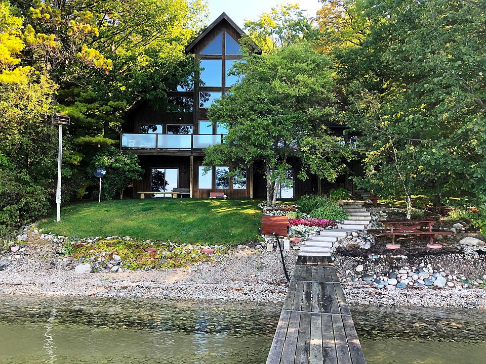 This is a stunning custom home on the east shore of Mullett Lake. It is so practical in so many ways..... with a nice master suite with office loft and open floor plan with amazing views across Mullett Lake. The screened in porch is perfect for entertaining with a lakeside deck, features also include inside hot tub in the lower level and vaulted ceiling in the large open living room. Built in 1995 by a custom home builder and it had been continually updated since. It really is a place you have to see because it feels expansive once inside and flows through out the entire floor plan. 3 bedrooms 3 baths attached garage and just all around a great home or cottage.