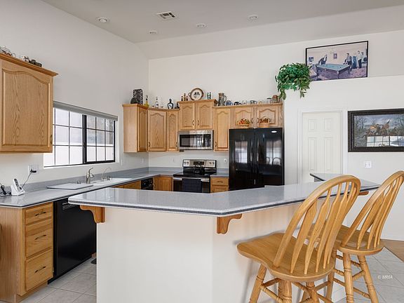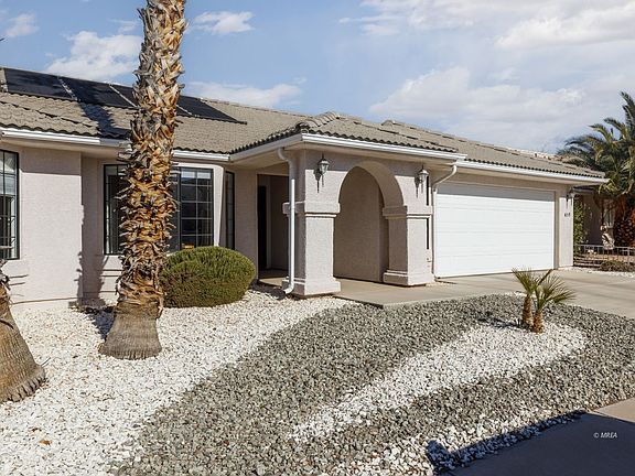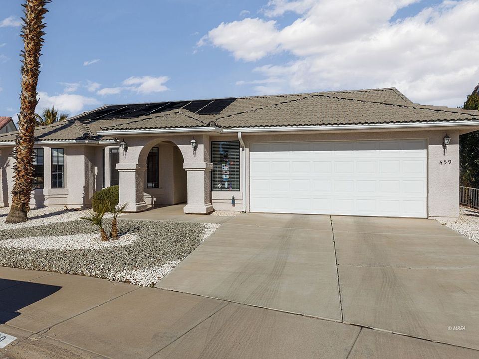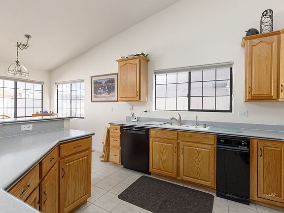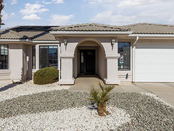 Pride of ownership shines throughout this beautiful 1,756 sf home. The exterior is white stucco, accented by black Anderson doors and a gray tiled roof. Interior is also painted white. Vaulted ceiling in the great room gives an expansive feel. Kitchen has beautiful Corian counters, breakfast island and natural oak wood cabinetry. It also has a nice walk-in pantry. Main bedroom again has a vaulted ceiling and door exiting to the back yard pool. Main bathroom sports a dual vanity with nicely selected granite. The spacious shower has been professionally updated with tile, dual shower heads, one being a rain type and a wonderful glass door that swings both ways, Great upgrade! The garage has extra space to the side, large enough to squeeze a side-by-side in or build a workbench area. Out back we find the in-ground fiberglass pool, perfect to cool off on those hot summer days and has solar panels on the roof to heat it.