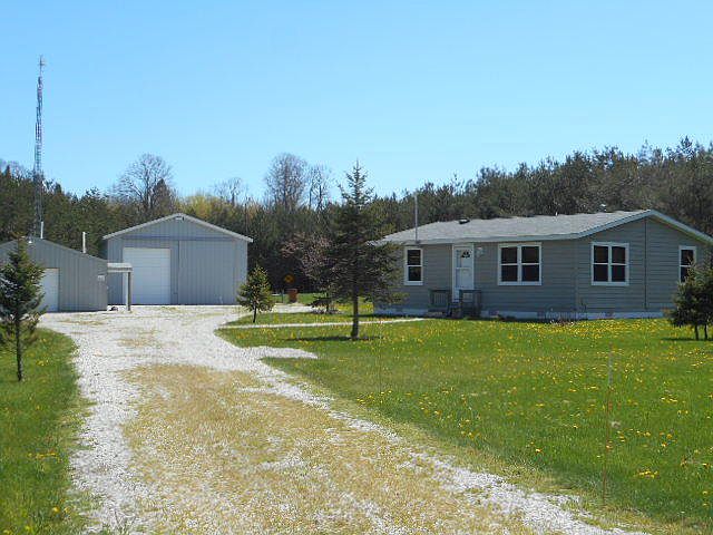 JUST REDUCED!! MOTIVATED SELLERS! 40 prime acres with a Spotless QUALITY, Manufactured home with 2 Awesome polebarns for your UP Toys!! Big Manistique Lake is WALKING DISTANCE, for fishing HUNTING out your back door, with 3 deer blinds!! All higher ground on year round paved road!! One garage is heated with a cabin/workshop w/ 3/4 bath for guests, and 1.5 car storage on other side. Then the other garage is 30x40 with 16' door and upstairs storage! The home has cherry cabinets with spacious open kitchen/dining to the livingroom for easy entertaining! 2 nice size bedrooms, full bath and laundry. Wired for generator, landscaped, and walking distance to where CR 459 dead ends into the lake! A must see the quality of this home, and its PRIME location, on paved road. Bring your offers!!