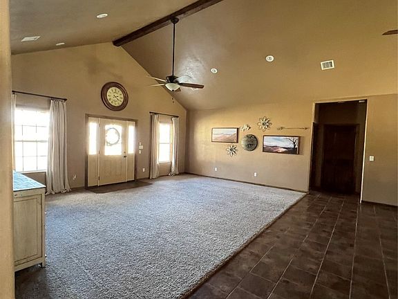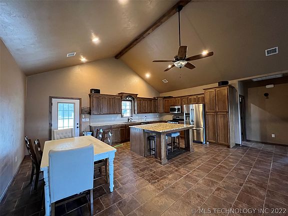 Come enjoy your morning/evening tea or coffee on the front or back covered porch overlooking 3 peaceful acres.This showstopper open concept home is 3/2, 1887 sq ft and comes equipped with the fridge & Nest surveillance cameras. All lights are synced through Google Home. Exterior includes storm cellar & 2 shops, 14x32 & 16x24. Shops are fully insulated with electrical and heated/cooled with a mini split & Wi-Fi availability. Gas hookup function available for fireplace feature in Living room. Don't miss out on this! Call today to set your appointment!