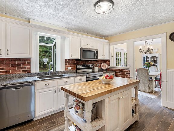 This beautifully remodeled 1940 dormered Cape seamlessly blends classic charm with modern elegance, thanks to a comprehensive renovation completed in 2020. The home features 3 bedrooms, 2 full baths, a dedicated office, a formal dining room, and a family room shared with a practical mudroom. The kitchen shines with granite countertops, a custom island, and ceramic tile that flows through the entire first floor. Enjoy the warmth and efficiency of three heat pumps and a cozy wood stove for year-round comfort. Outside, the property is adorned with well-maintained gardens and landscaping, offering a peaceful retreat. The dormered design includes a welcoming front covered farmer's porch and a spacious back deck, both made with low-maintenance Trex-style decking. A paved circular driveway completes the picture of convenience and curb appeal for this stunning home.