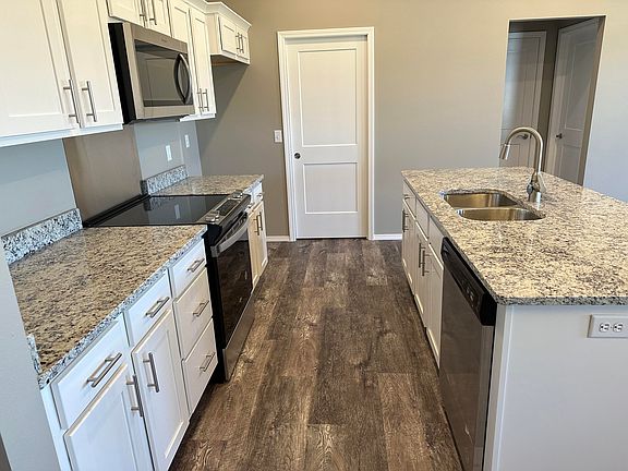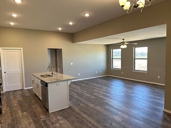 New oversize 2 car garage split bedroom plan home with vinyl plank flooring in the kitchen and living areas, large kitchen island, granite countertops, walk-in pantry, raised ceilings, covered patio with a great view and landscaping. More new homes available in this subdivision.