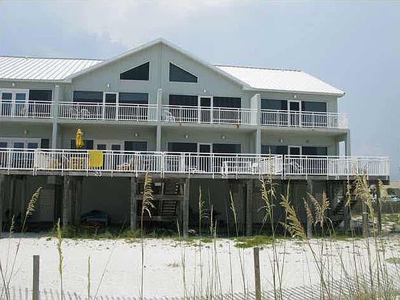 YOUR GULF FRONT townhome has pearl white sand and emerald green waters for a back yard. Unit was custom built for original owner in 1996 with a seaside cottage decor including real oak hardwood flooring. Ample covered deck on ground floor with hot and cold shower. Spacious partially covered deck on second floor and balcony on third floor off master bedroom. Partially furnished with excellent rental potential. Built with concrete pilings and core slab with metal roof. Vaulted ceilings in the master bedroom with cozy loft for reading. Three car garage for storage and private entrance. Sale subject to lease that runs to April 10th 2014 at $3,250 per month.