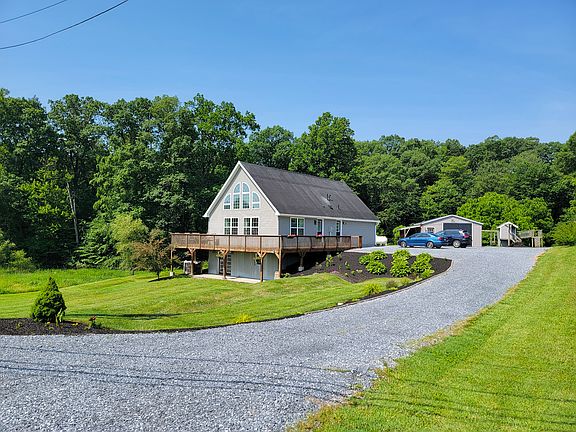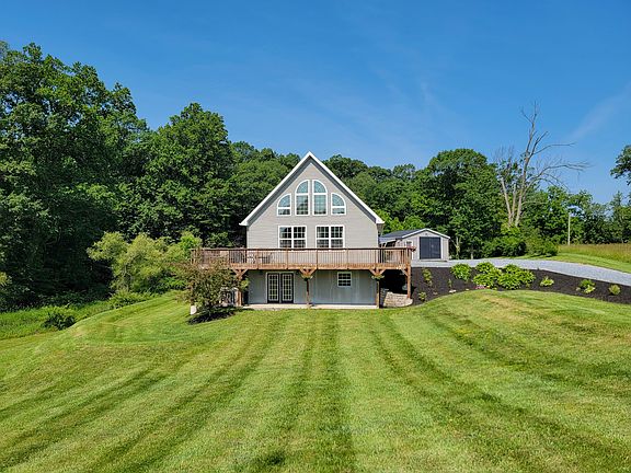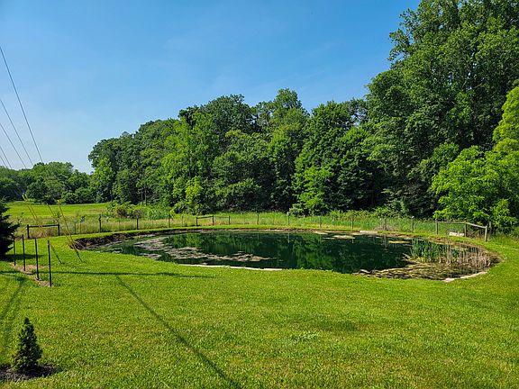 Your search for the perfect home stops here! Sitting on over two acres of land, this beautiful home boasts country views, a pond, and a brook running behind the property for a tranquil place live. With an open concept floor plan, you'll find plenty of room for friends and family to gather together in this spacious and airy home. Enter into the living room with vaulted ceiling and a wall of windows soaking the space in light and letting you take in the views! The kitchen offers beautiful cabinetry with a complimentary backsplash and accents and a center island with breakfast bar for extra seating. The adjacent dining area has doors leading to a wrap around deck so you can enjoy the outdoors from any angle of the house! The first floor also offers a laundry room, family bathroom, ample closet space, a master suite with luxurious bathroom that includes a double bowl vanity, step-in shower, and soaking tub, plus another bedroom and an office/study. Ascend the stairs to a loft area that is open to the living room below and leads to a third bathroom with shower and two more bedrooms. There is a basement with a large finished area to serve as a family room, plus additional rooms for storage. Multiple outbuildings for all your outdoor storage needs are also included. Don't miss your chance to step into this beautiful home and make it yours today! 1 pet up to 25lbs (at maturity) permitted with additional fees. An approved application is required prior to scheduling a showing. Please see the Wolf & Kline website for more details. One year contract, renews month-to-month after the first year.