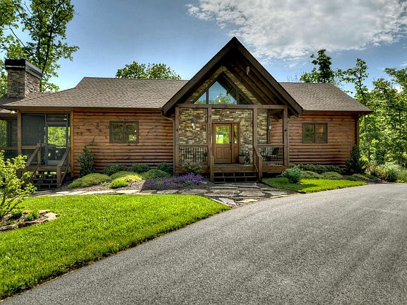 Rustic Mountain Retreat Located in Established Upscale Gated Paved Road Community w/FIBER INTERNET Service. Enjoy the Mountain View from Covered Screened Party Porch w/Wood Burning Fireplace + 2 levels Covered Decks w/Private Screened Porch off Master Suite. Main level offers great room w/plenty of windows/stone gas Log fireplace/cathedral ceiling, spacious kitchen with plenty of cabinets/granite countertops/stainless appliances/gas range/pantry, ample dining space, master suite w/double vanity/custom tile shower, & half bath. Terrace Level w/game room/wet bar, 2 guest bedrooms/2baths, laundry room, exterior storage room. Elegant mix of tongue-n-groove and rough sawn wood, hardwood & tile floors throughout, pristine landscaping, paved drive, gentle terrain & approach to house w/hiking trail to your own stream. Great location within minutes of Downtown Blue Ridge, Lake Blue Ridge, Toccoa River, and hiking and mountain biking. Furnishing negotiable.
