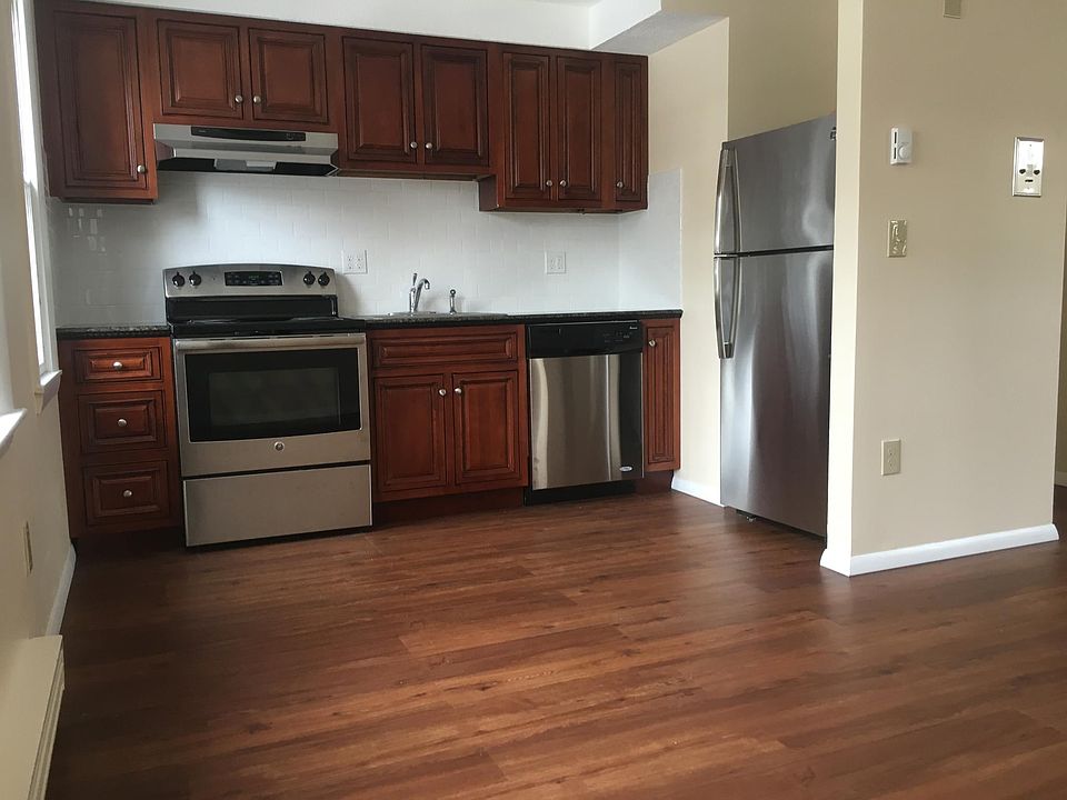 For rent is a 2 bedroom with bonus room apartment which has been recently remodeled. This apartment has a fully applianced kitchen with dishwasher and granite counter tops. The apartment also has built in AC in the living room, off street parking for one car and on site laundry. This apartment is on the second floor. Landlord references and a good rental history is required. Sorry, no dogs. The monthly rent is $1075.00 per month, tenant pays utilities. Feel free to call for more information 623-2787. Tenant pays utilities, heat hot water and lights. No dogs, references required.