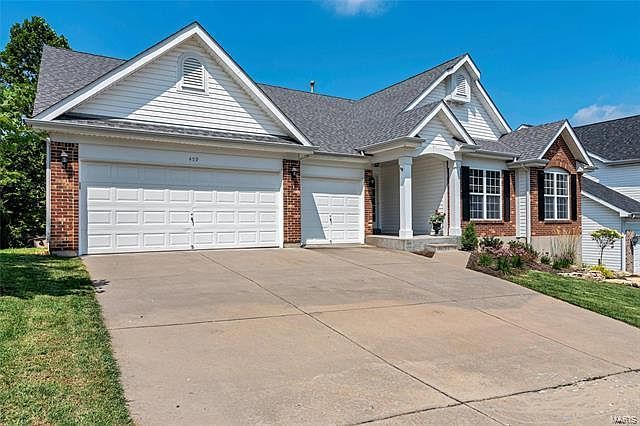 IMPROVED PRICE! Welcome to 459 Meramec View. Professionally painted, beautiful atrium ranch in Legends Golf Community. Great place to call home. Perfect place for entertaining guests with newer kitchen--delight for any chef. Soaring vaulted ceilings add to feeling of spaciousness in great room & master bedroom. Oversize windows provide sunny interior. Gleaming engineered wood floors stand up to pets & kids. Split floor plan w/master ensuite tucked away from other bedrooms. Lower level walk-out has family room, space for pool table, full bath & 4th bedroom. Wooded backdrop accents deck & stamped concrete patio which offer plenty of outdoor living. Enjoy the community pool & sport court, (pickleball, sand volleyball, playground, & tennis courts). Golf & social memberships available. Easy exit to 109 and I-44. Part of award-winning Rockwood School District, all thats missing is you! Many smart home features.The municipal inspection has been completed. Driveway repairs are underway.