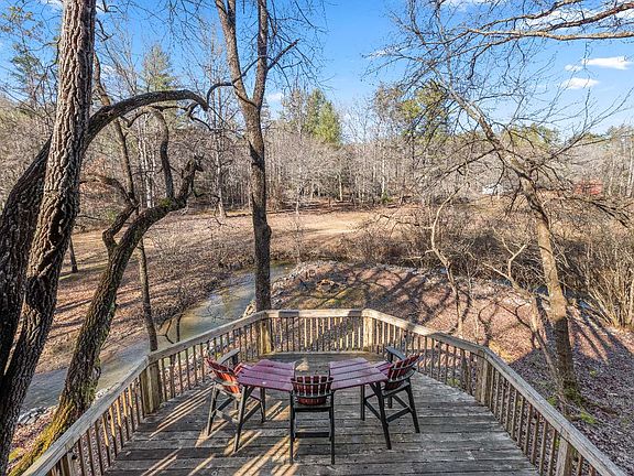You can Not Build this Close to the Water anymore !! Turnkey, Fully Furnished, Hand Hewn Log Cabin, Log sourced from the land the cabin is located on. Cabin is traced by the banks and gentle rush of Pack Creek. Cabin has been a Vacation/ Short Term Rental Home. This 2 Bedroom 1.5 Bathroom Cabin comes Fully Furnished ,Vaulted Ceilings, Stone Fireplace, Beautiful Loft Ceiling Mural, Hot Tub, Fire Pit, Porch Swing and More than 200 ft. of Creek Frontage that seems to circle the entire Cabin. Upper deck level offers Pasture views, Cafe style Mosaic table for morning coffee or maybe a good read in the Porch Swing. Lower deck level offers Hot Tub, Weber grill, Partial Bathroom, Laundry room, storage and the deck shoots outward with the creek overlooking the fire pit and Impressive Creek surround.