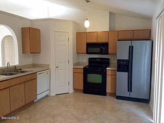 Multiple offers being reviewed. Peaceful, Pristine Home in Palm Bay. Close to Bayside High and Shopping. Modern Floorplan Featuring a Family Room with Vaulted Ceilings, an eat-in Kitchen with a Double French Door. All Appliances Stay, Including Stainless Steel Refrigerator. Inside Laundry includes Washer and Dryer. Large Master with a Walk In Closet. Tile Everywhere except Carpet in the 2 Guest Bedrooms. Surrounding Homes/properties are maintained. Great Value for a Concrete Block Home with City Water. No Home Owners Association to worry about. Move in Ready! Please see Agent Remarks!!