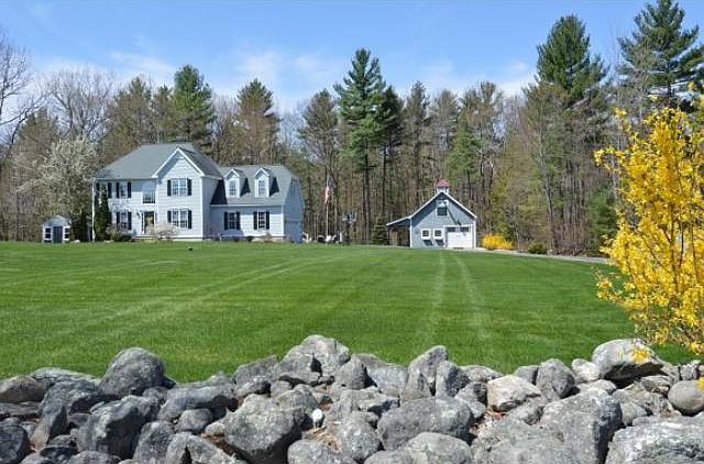 You'll fall in love with this sun drenched 4BR Colonial with custom Barn abutting 400 acres of conservation land. The 2 story foyer welcomes you in and leads you into the dynamic kitchen with maple cabinets, double oven, center island with sink and walk in pantry. Step down into the custom sunroom with solar tinted windows and enjoy your morning coffee. This home offers spacious rooms and a great floor plan that's perfect for entertaining with the formal LR room w/gas fireplace and Family Room with soapstone woodstove and granite hearth. Plenty of options with the 4th BR or playroom. Newer highly efficient York Heating system and A/C along with new furnace for upstairs zone. 2 car heated garage. Professionally landscaped with stonewalls and bluestone patio and firepit. Alarm system with motion detection. Pocket doors, crown molding, shutters, custom blinds, 1st floor laundry, master with tray ceiling and private bath. Minutes to shopping and schools. This home has it all!