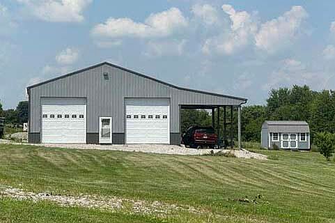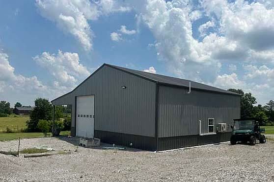 40' X 40' Metal Building with 16' X 40' Lean-to located on 5.69 fenced acres. The building has three 12' overhead doors, 2 walk through and 2 windows. There is approximately 800 sq. ft. living area, one bath with loft overhead. Inside there is a 50 amp plug and water spigot. Two water spigots outside. Mini-Split heating and cooling unit. 10' X 16' Storage Building.