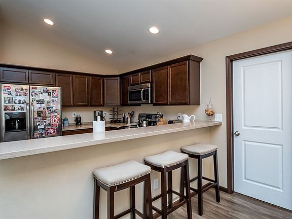 Lovely, nearly new 3 bed 3 bath condo on the edge of Tiffin! Close to schools, Fareway & straight shot into Coralville, just minutes away! Open concept living area with cozy fireplace, vaulted ceilings and sliding glass door to cedar deck w/ wooden views! Kitchen features stainless steel appliances, inset sink & large breakfast bar! Master suite with large front window, master bath with dual vanity & large walk-in closet! Lower level features 3rd bedroom, full bath, laundry & family w/ walk out to patio.