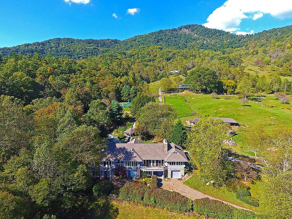 Pure enchantment awaits in this mountain estate of 8.1 acres,a country retreat for the current family but could be a B&B,wedding venue, vacation rental, equestrian/fabulous farm. Situated just 8 minutes from Waynesville, the home offers 6 bedrooms, 6 baths, entertaining and hobby areas. Architectural details,quality craftsmanship, stone and wood throughout. The grand family room and master wing are a mountain view showpiece not to mention the views from all the other rooms. Boasting 6 fireplaces, lofts & private baths, each bedroom is a separate living unit. Decks or patios each bedroom begs for lovely evenings under the stars. The lower level offers 2 garages, workshop & billiard room. The grounds offer: two beautiful pastures,a large barn plus extra storage buildings for the animal lover in the family, a tennis court for matches among friends, pool for summer days, hiking trails and creek. A rare NC opportunity to scoop up with beautiful laying land and outstretched layered mountain views. More acreage and furnishing also available if desired