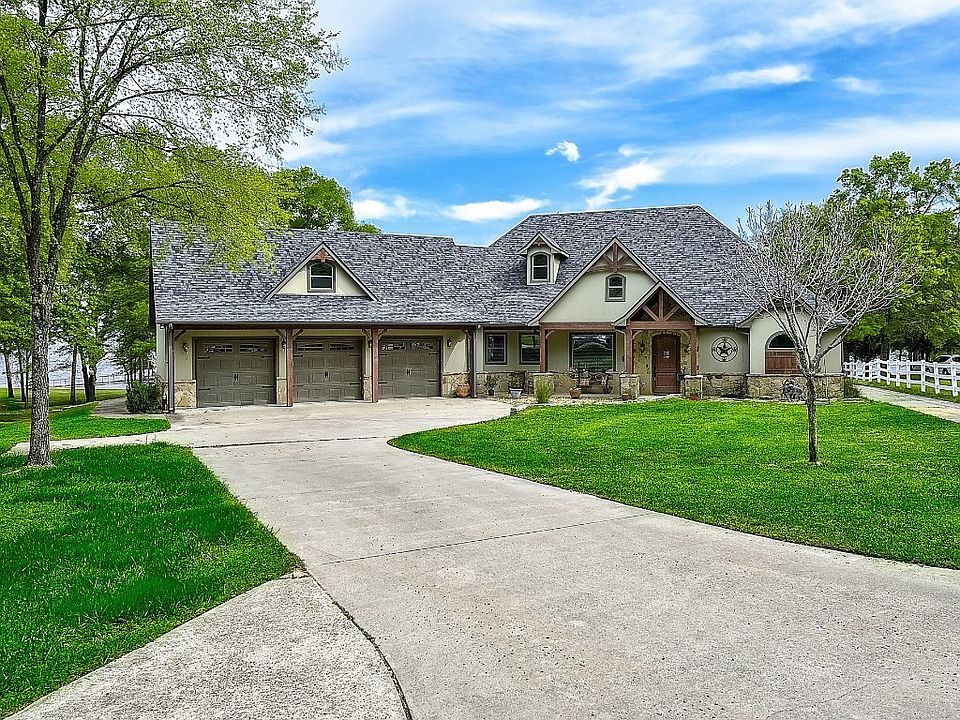 This stunning waterfront home in Northshore boasts breathtaking views of Lake Fork and offers unparalleled opportunities for bass fishing right from your backyard! Home features an open floorplan with split bedrooms. The kitchen is appointed with high grade Brazilian 'Gaya' granite, stainless steel appliances. Beautiful lake views from owners retreat, living area, kitchen and dining area. The upstairs area features a 'bunk' bedroom with 4 built-in beds for overflow guests, plus a bonus room. Outside you'll find a large deck perfect for hosting summer BBQs or simply relaxing, enjoying the serene views of the water. Also featured is an 8' concrete driveway from the front of the property to the boat house. A community boat ramp is nearby exclusively for Northshore homeowners. In addition to .589 acres, there's also .53 acres leaseback land attached. With easy access to boating, fishing, and all that lakefront living has to offer, this property truly is a fisherman's dream come true.