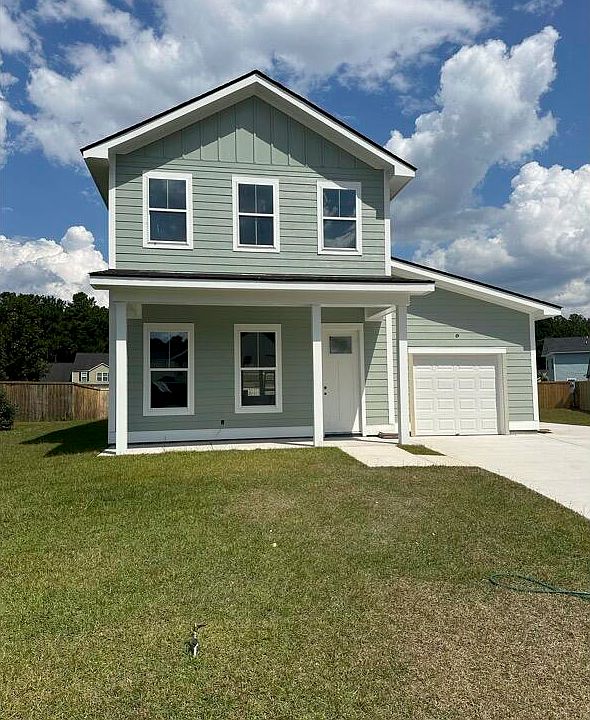 Welcome to the Laurel, a charming 3-bedroom, 2.5-bath Low Country-style home designed for comfort and easy living. A welcoming front porch and covered rear porch create inviting spaces to relax and unwind, while the spacious backyard is perfect for outdoor enjoyment. Inside, the open-concept main level features bright living and dining areas and a large kitchen with an island, 42-inch hardwood cabinets, and quartz countertops. Expansive glass doors fill the space with natural light and open directly to the back porch, creating a seamless flow for indoor-outdoor living. Upstairs, the primary suite offers a peaceful retreat with a walk-in closet and a tiled shower with double vanities, while two additional bedrooms share a convenient Jack and Jill bath.A thoughtfully placed upstairs laundry completes this welcoming home.