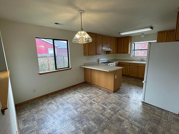 Modest home in a desirable neighborhood in Fortuna. House needs new floor coverings and some interior paint but otherwise it is ready to go for new owners. Nice sized patio in the backyard. Lots of mature trees and a large back and side yard. 2nd bedroom has vinyl floors because it was used as a hobby room. Large Primary Bedroom with twin closets and a slider to the backyard. Kitchen and dining area have a pass through opening to the large vaulted living room. Fresh paint and floor coverings and it will be like walking into a new home. Laundry is indoors on the way to the two car garage. Perfect home to age with, no steps to the front door or into the garage.