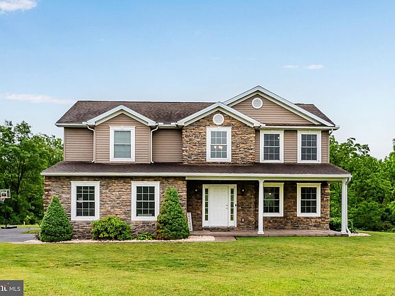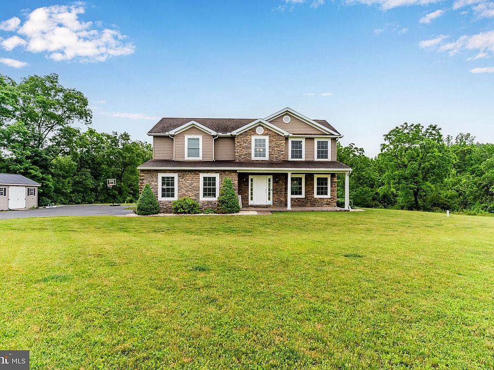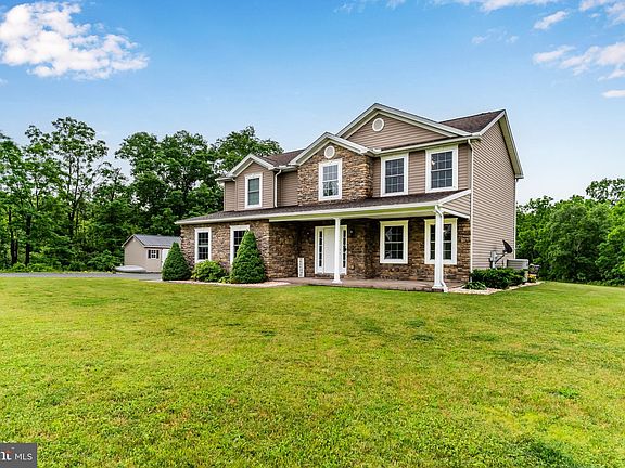 Nestled in the heart of the countryside, this beautiful traditional home offers exceptional privacy and panoramic mountain views from the oversized front porch. Situated on a spacious double lot, this property is a peaceful retreat. Step inside to an inviting open floor plan on the main level, featuring a formal dining room adorned with chair rail, wainscoting, and crown molding. The cozy living room boasts a striking stone fireplace with a mantel, perfect for relaxing evenings. The large kitchen area is perfect for entertaining, complete with a center island, ample pantry space, and generous counter area. Upstairs, the expansive primary suite is a true haven, showcasing vaulted ceilings and two walk-in closets. The luxurious en-suite bathroom includes a jetted tub, walk-in shower, and dual sinks, offering spa-like comfort. Two additional bedrooms provide flexibility for guests, family, or a home office. The lower level offers a partially finished basement with abundant storage space, adding even more versatility to this incredible home. Outdoor living is equally delightful, whether you're taking in the views from the oversized front porch or entertaining on the stamped concrete patio in the backyard. With state parks nearby, this location is ideal for nature lovers and outdoor enthusiasts alike. Don’t miss the opportunity to make this private retreat your own!
