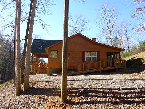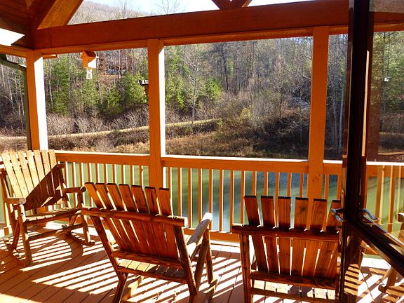 Pond front sweet cabin in perfect condition and great floor plan. Lives large with full back screened porch and front covered porch overlooking pond as well as side sun deck overlooking the fire pit. Beautiful wood work with flooring and ceilings complemented by the stone fireplace and open flow of the great room with granite counter tops, up graded appliances, maple cabinetry and kitchen island. Bedroom and bathroom on each side of great room with both bedrooms opening to the back screened porch. Lovely setting with storage shed and fiber optics!