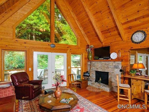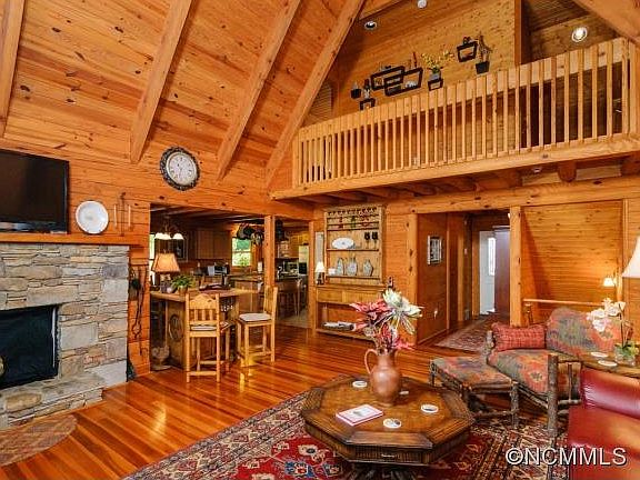 If you ever dreamed of owning a log home in the mountains, this is ideal. Surrounded by stately trees, laurels and rhododendrons. There is a small waterfall behind the house to add the final touch.The home has granite counters, wood floors,tile and carpet floors, stone fireplace, new kitchen, whole house generator, outdoor patio and kitchen. Four bedrooms, 4 baths, lower level game room and bedroom. bonus room. LS-4