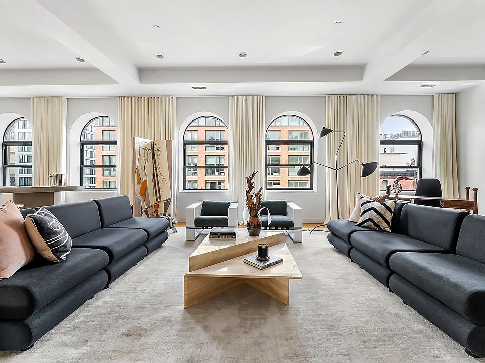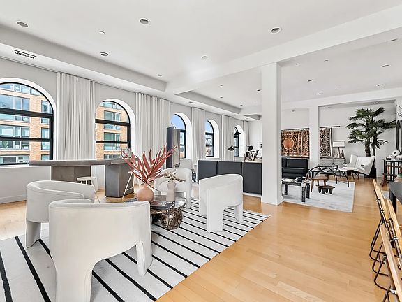 LIVE-WORK Hudson square penthouse -2406 sqft 3 bedrooms 2.5 Bathrooms,3 Skylites, and a 600 sq feet private terrace., two fireplaces The layout is an open corner Living room-dinning room and an open eat-in kitchen--5 windows facing west, a large south-facing window from the kitchen, and a wood-burning fireplace. The bedrooms are on the opposite sides of the living quarters, which are laid out as a large master bedroom with a gas fireplace and ensuite master bathroom with a separate shower and a huge jacuzzi bathtub, and a south-facing window 3 east windows, and a large walk-in closet. The adjacent bedroom to the master has a skylight. And the 3rd bedroom has a full bathroom with a separate bathtub & Shower. There is a washer & dryer in the unit. The private terrace is about 600 sqft, which has open views all around. The building ( John Watts Condominium) is a well-established condo is a 7 Stories elevator building with 2 units per floor. A large storage room comes with the unit with the sale.