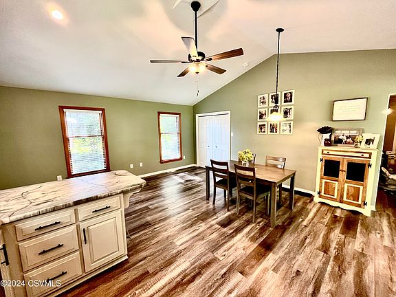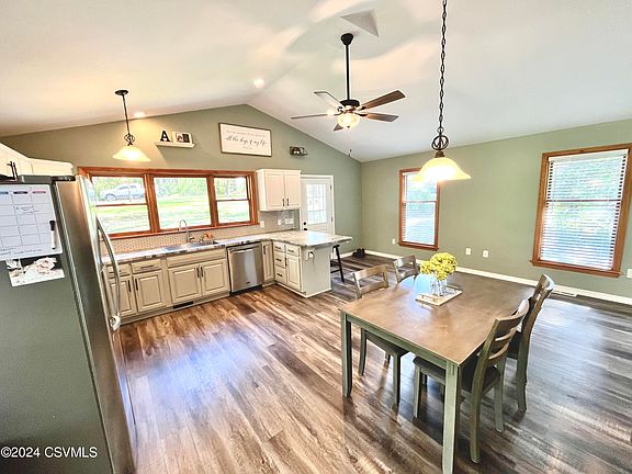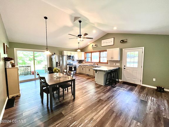 Come see this newly renovated home located on a private acre of land, and a large shop/4 car garage with a circle driveway. Enjoy relaxing or grilling on one of the two decks. Also a full basement, that was previously used as a repair shop.