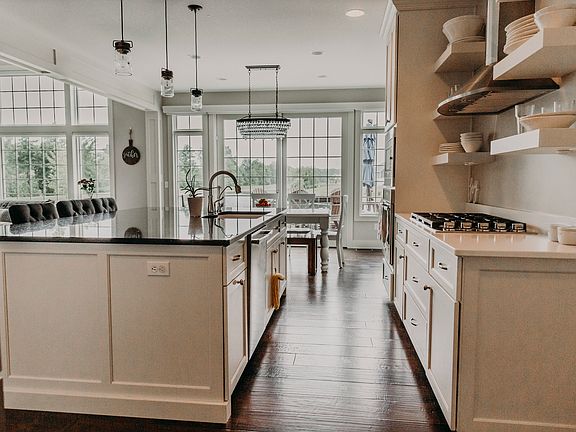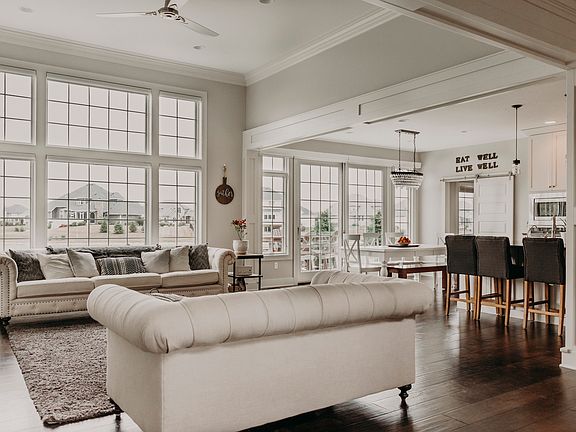 Please contact Abby at 812-528-4090 if you would like to tour this home. Imperial Homes custom built 5 bedroom, 4.5 bath, fully finished basement home set on a scenic retention pond. Large, 0.6 acre pie shaped lot with large back yard. Tasteful grey craftsman exterior with stacked stone, hardy plank, and white trim. Very functional, modern open floor plan on the main floor, with front entry, great room, dining, and kitchen areas all interconnecting, with no wasted space. Large windows throughout the rear of the home, offering natural light throughout the year and beautiful views of pond and mature trees. Blinds added throughout the home, with motorized roller shades in the great room. High-end, distressed, hand scraped hard wood floors throughout the main level common areas, mud room, and restroom. Great room features gas fireplace, ornate mantle, and floor-to ceiling custom cabinetry and shelving. Immaculate kitchen with large black granite island, breakfast bar, exposed shelving, large gas range, and high end stainless steel hood. Stainless high-end appliances stay with home. Abundant white custom kitchen cabinetry extending to the ceiling. Extra-large walk in pantry with extra counter space for convenient, out-of-site placement of coffee maker, toaster, blender, etc. Ideal, unique layout for gathering, hosting, and entertaining. Convenient mud room adjacent garage entry with utility sink, large counter, hang bar, and generous shelving. Master on the main level with large windows and scenic pond view. Large master bathroom with stand-alone garden tub, large all-glass shower, tile, large double vanity, enclosed toilet, and large walk-in closet. 3 large upstairs bedrooms. The 2 north bedrooms adjoin via Jack and Jill bathroom and offer scenic views and walk-in closets. Nearby loft ideal for a reading area or upstairs study. South bedroom with full bath and massive walk-in closet that is ideal for upstairs storage. Spacious fully finished basement with wood accent walls, work out room, bedroom, full bath, abundant storage, and bonus room that can easily be converted to a 6th bedroom. Plumbing in place for later addition of wet bar or basement kitchen. High end trim with double crown molding, custom cabinetry, and counter-height vanities, granite countertops, and several pocket doors are additional extras. Home is nestled in a quiet cul de sac and in one of the nicest and friendliest communities in the region. Top notch Northwest Allen County school district and very close proximity to Parkview Regional Medical Center and Dupont Hospital. Please contact Abby at 812-528-4090 if you would like to tour this home.