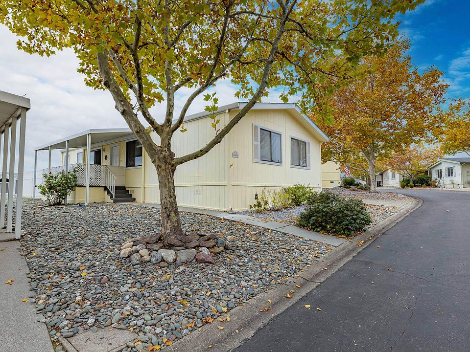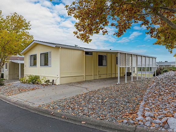 Light and Bright 3 bedroom 2 bath manufactured home in Redding's premiere 55+ community, Los Robles Estates. Pride of ownership is evident at every turn in this home. Spacious kitchen with great storage space and breakfast bar. Split bedroom floorplan and slider out to a full length covered patio and carport New HVAC, carpet and roof in 2015. Community amenities include a pool, rec hall, library and gym. Must See!