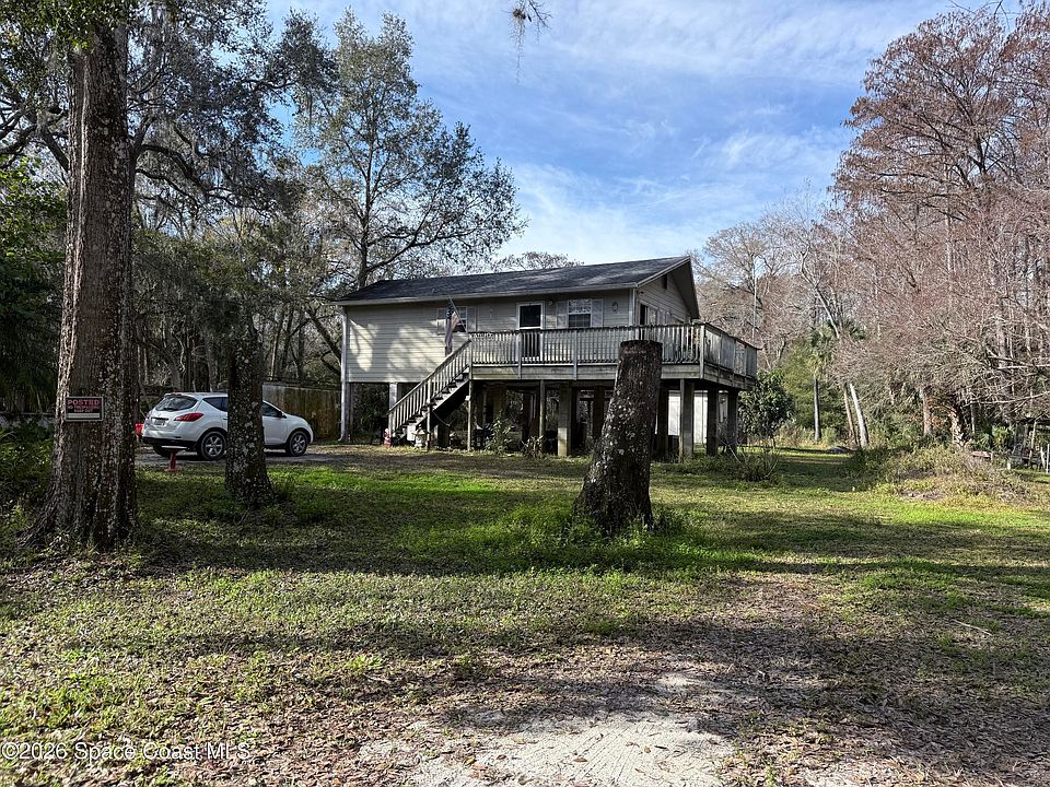 Escape to your own private sanctuary in Mims! This unique property offers 2.35 acres of lush, wooded privacy, perfect for those seeking a quiet country lifestyle. The home is thoughtfully elevated on stilts, providing enhanced peace of mind and protection while offering beautiful views of your surroundings.