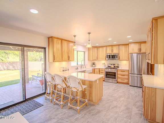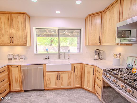 Gorgeous Catalina Foothills home that was renovated in 2020. You will love this quiet neighborhood located only 10 minutes from La Encantada, Sabino Canyon, TMC and just over 20 minutes from the University of Arizona. The home sits on over 1/2 acre, with a large back yard.The home was renovated in 2020 with tons of upgrades, including new kitchen with hickory hardwood cabinets, quartz countertops, Kohler enameled cast iron farmhouse sink, and Samsung stainless appliances. Renovations also included water supply lines, new ceramic tile floor throughout, Milgard dual pane windows, and 3 walk in closets. The roof shingles were replaced in December 2023 and the warranty is transferable to new owner. Come see this bright beautiful home today!