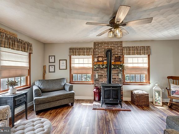 This gorgeous modern style farmhouse has been recreated for today's buyers. In 2024, numerous improvements have been made, including a new 50-year shingle roof, gutters, soffit, fascia, upgraded siding and exterior stone, and new kitchen appliances. The stylish leathered look granite countertops add a rustic aesthetic to the superb interior design. Additional upgrades include a new heat pump for the main house, freshly painted, and new LVT flooring on the main level and new carpet on the upper level which enhances the inviting atmosphere throughout this gracious home. All four bedrooms are generously sized, with a 32' x 32' bonus room that includes a full bath, making it suitable as a fifth bedroom. This "Top Notch" property offers exceptional convenience with three full bathrooms, one half bath, and rough-in plumbing for an additional lower-level bathroom. The home emphasizes attention to detail, cleanliness, and comfort. Exterior features include a perfectly sized screened-in patio off the kitchen with country views and a newly added stone accent wall. The oversized three-car bay garage provides ample storage space and is sure to impress any car enthusiast. Book your appointment and enjoy touring this country home with all its enhanced features and upgrades.