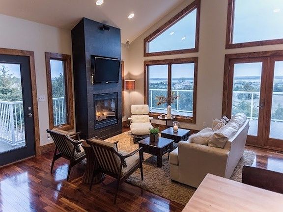 - Living Room: Wood, Bay Window, Fireplace, Sliding Glass D