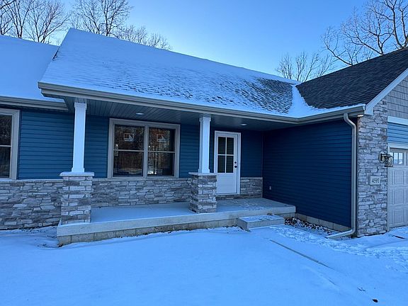 Brand New and 100% completed! This sprawling 2000+ sqft ranch home is ready for you to move right in! Nestled on a 1 acre lot , this home offers a beautiful wooded back drop. As you enter via the covered front porch you love the first impression this home makes as you walk in. A formal dining room area can also be walled off for an office or whatever you want! The open kitchen boasts tons of cabinets with quartz tops, an island, a pantry and access to the rear yard via sliding doors. The huge living room has soring ceilings and a beautiful stone fireplace for those winter nights! A spacious laundry/mud room is located just off the garage for great spot to drop boots & coats. Bedrooms 2 & 3 share a full bath while the main bedroom has it's own walk in closet and a huge bathroom with a custom tub and separate custom tiled shower! Start the year off right... treat yourself to a new house!