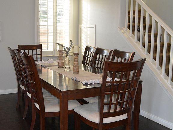 Come see this beautiful home located in the gorgeous gated Rivera Community with a pool, spa, Clubhouse, park, walking paths, picnic tables, and BBQ. This 2,056 sqft home features 3 bedroom, 2.5 bathrooms, a loft, is located on a corner lot, and has a wonderful floor plan for entertaining! You are greeted with a beautiful living and dining room containing custom white shutters and dark wood floors that flow throughout the downstairs into the family room. The cozy family room has a fireplace with an open floor plan into the kitchen. This home has a large kitchen with upgraded corian countertops, beautiful white cabinetry, stainless steel appliances, a custom made island that can easily seat 7+ people, lots of storage, and tile floors. Upstairs you will find the loft featured with dark wood floors, 2 guest bedrooms, a guest bath, laundry room, and large master bedroom including a private bathroom with a walk-in closet. The backyard is low maintenance with grass area and a concrete patio that is a great space to BBQ. Lastly is an attached 2-car garage with built-in rafters for storage. Conveniently located near schools, shopping, restaurants, parks, the 60, 91 and 215 Freeway! Don't Miss out on an opportunity to own a NEWER MOVE IN READY RIVERSIDE HOME!! Call Jenna @ 951-214-1845 to set up an appointment to take a tour or for instructions to get through the gate.