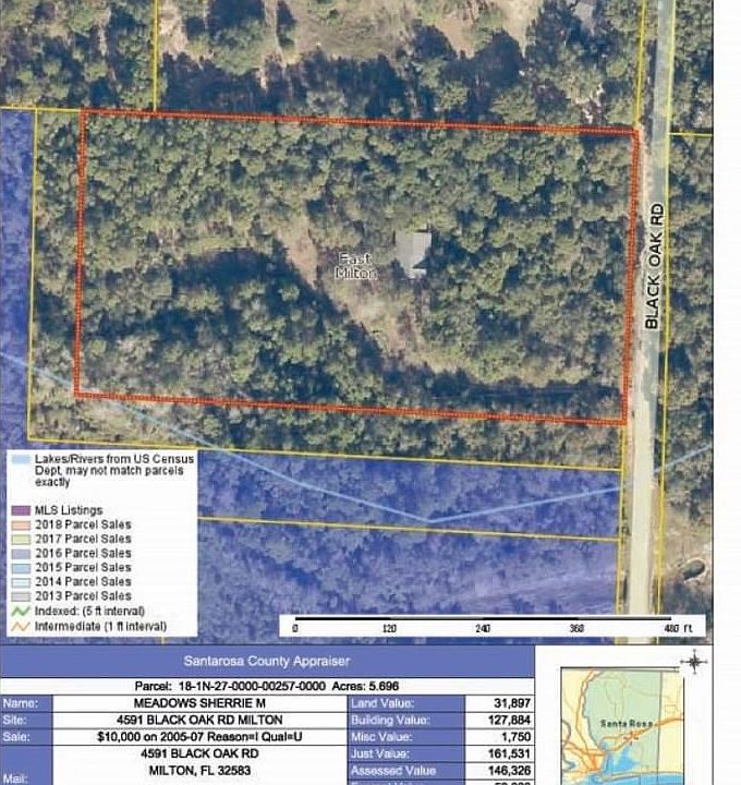Great home on some acreage, with easy access to I-10, Milton, Pace and Pensacola. Come home to your relaxing homestead surrounded by trees and nature. This home offers an open floorplan, 3 bedroom and 2 baths, nice sized kitchen and inviting family room which opens to a wonderful enclosed lanai. Home price may change, depending on the amount of repairs to be completed. All room sizes are approximate.