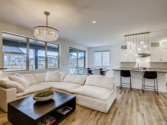 Immaculate, newly-built 4-bedroom home with modern design throughout with 3 car garage! Inside you greeted by soaring ceilings, beautiful wide plank luxury flooring, and large picture windows providing an abundance of natural light! The spacious open floor plan includes a chef's kitchen complete with a huge walk-in pantry, double ovens, a 5-burner gas stove top, gorgeous quartz countertops, and a large kitchen island opening to the living and dining room. Sliding glass doors off of the main level leads to the private backyard retreat with a large covered patio and a fully fenced yard. A laundry room, a 3/4 bathroom, a bedroom and an office overlooking the snowcapped peaks and the community lake concludes the main level. The luxurious master suite includes two generously-sized walk-in closets and a spa-like bathroom with a glass-encased shower. Two additional bedrooms, a full bathroom, and a family room complete the upper level. Located in the desirable Barefoot Lakes community offering an abundance of amenities including, a 7,000 sq. ft. rec center with sport courts, an outdoor pool, a 12 acre park, plus a 90 acre lake with 2.8 mile trail around it. Finish the basement for more added value and square footage.