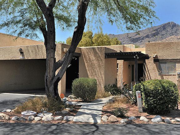 Gorgeous Mountain Views and Backyard with lots of natural desert landscape make this 2 Bed 2 Bath+Den townhome special. Part of the Viewpoint community. 1355 SQ FT. Updated Kitchen with granite counters and newly painted cabinets. Living room with beehive fireplace and lots of natural light. Den could easily be 3rd bedroom or office. Master suite with private access to patio and walk in closet. Private yard with split rail fencing, lots of natural desert landscape and catalina mountain views. 2 carport, full size washer/dryer,storage.