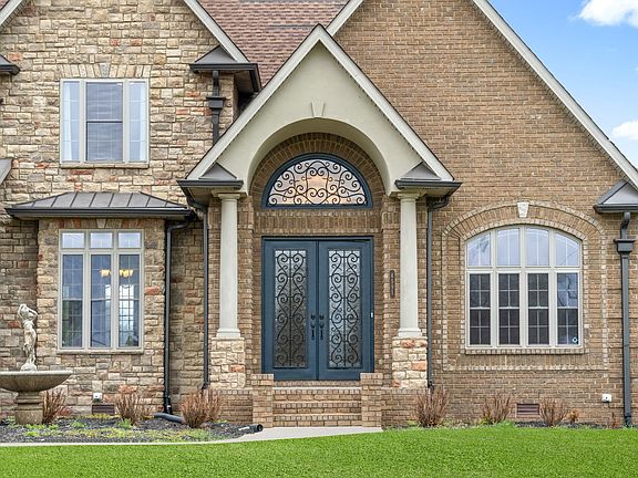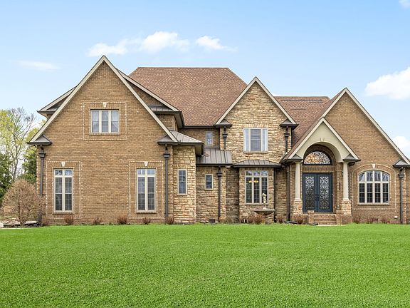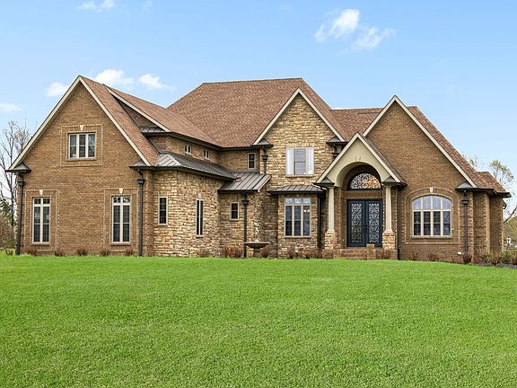 Custom-built brick and stone contemporary style home near the Eastland Green Golf Course is just waiting for you! Attention to detail featuring a gourmet kitchen, farm sink, arched doorways, beautiful custom cabinetry, 2 walk in pantries, 5-burner gas cook top, breakfast nook a welcoming gathering room nearby-cathedral ceilings, built in bookcases! The owner’s suite, located on the main floor, with a lovely sitting area, an adjoining office and luxurious bath, tile shower, his and her walk-in closets.A beautiful balcony overlooking the 2-story family room that leads to the upstairs bedrooms.Each guest suite has a full bath with easy access to a very spacious bonus room! You find a full outdoor kitchen a nighttime gathering spot to make memories by the firepit overlooking the inground pool.